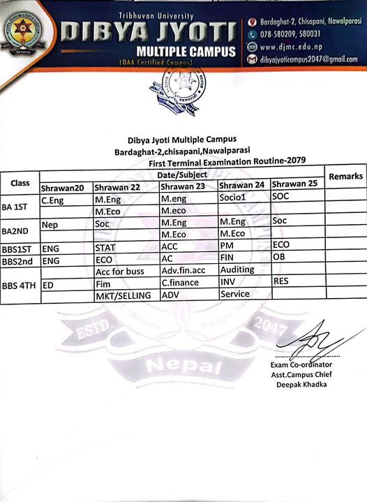 31st July 202231st July 2022 Comments 0 Feedbacks on “आन्तरिक परीक्षा २०७९ को समयतालिका”Uncategorised by Raju Paudel आन्तरिक परीक्षा २०७९ को समयतालिका