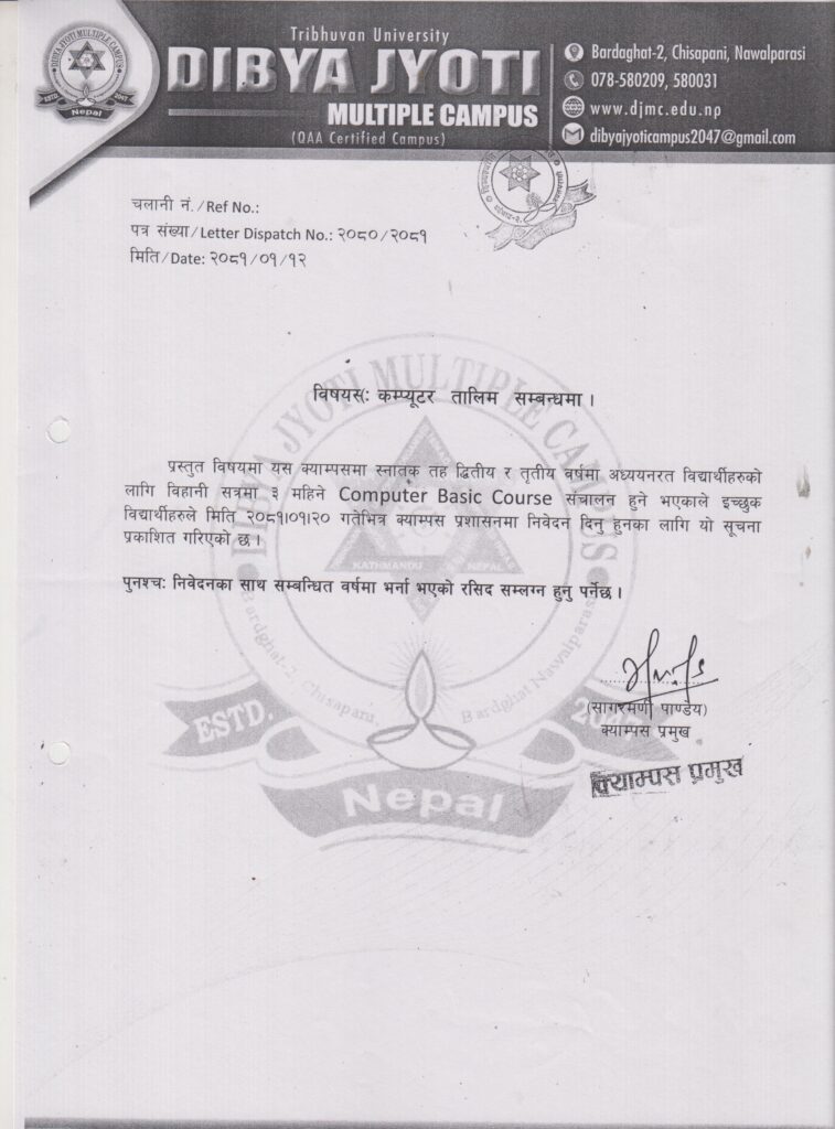 9th May 20249th May 2024 Comments 0 Feedbacks on “कम्प्युटर तालिम सम्बन्धमा”Uncategorised by Raju Paudel कम्प्युटर तालिम सम्बन्धमा